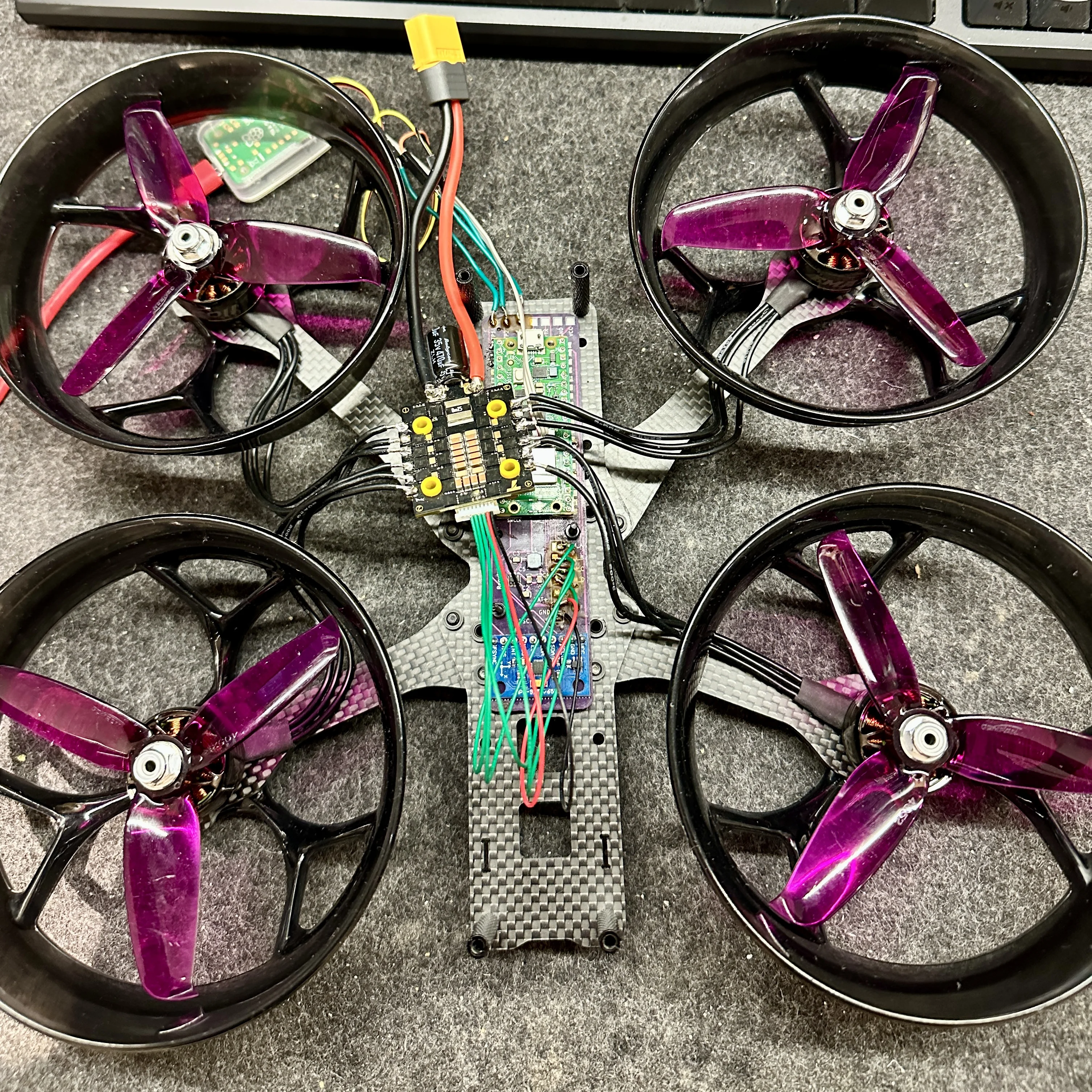 I developed a drone from the ground up for the Cornell Motion Capture Studio, advised by Prof. Brian Kirby. Intended for use in various ECE/MAE classes, the drone’s flight controller is designed to be based on the Raspberry Pi Pico W, and its flight software is written in pure C. I developed the low-level libraries for the Electronic Speed Control (ESC), Inertial Measurement Unit (IMU) , the Radio Receiver. On top of these, I designed the sensor fusion filter system for denoising and state estimation, and a PID controller. I also designed the PCB.
